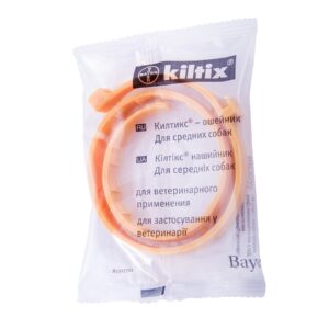 Нашийник Кілтікс (Kiltix) для собак, 48 см Опис: Полівінілова стрічка жовтого кольору, на яку нанесено торговий знак фірми «Байєр» з