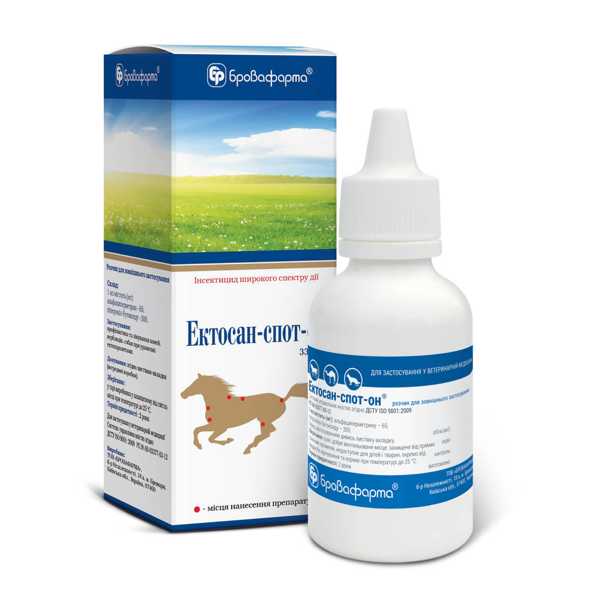 Розчин наносять на шию, холку, підгруддя, стегна та навколо хвоста (по 2-3 мл на одне місце) у таких дозах: