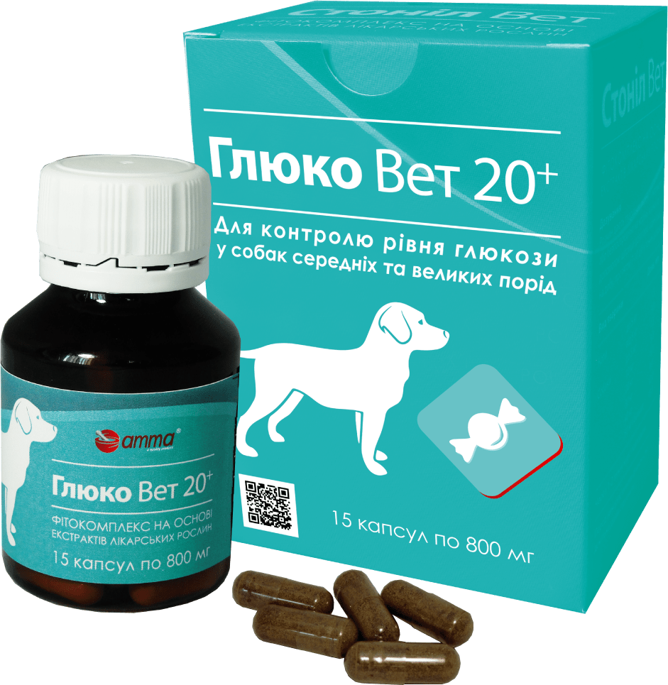 Глюко Вет 20+ фітокомплекс на основі рослинних екстрактів, 15 капсул