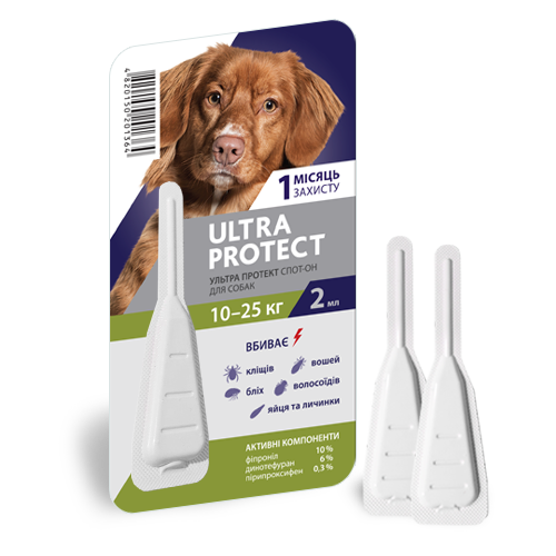 Краплі на холку Ultra Ptotect для собак 10 – 25 кг, 2 мл, 1 піпетка