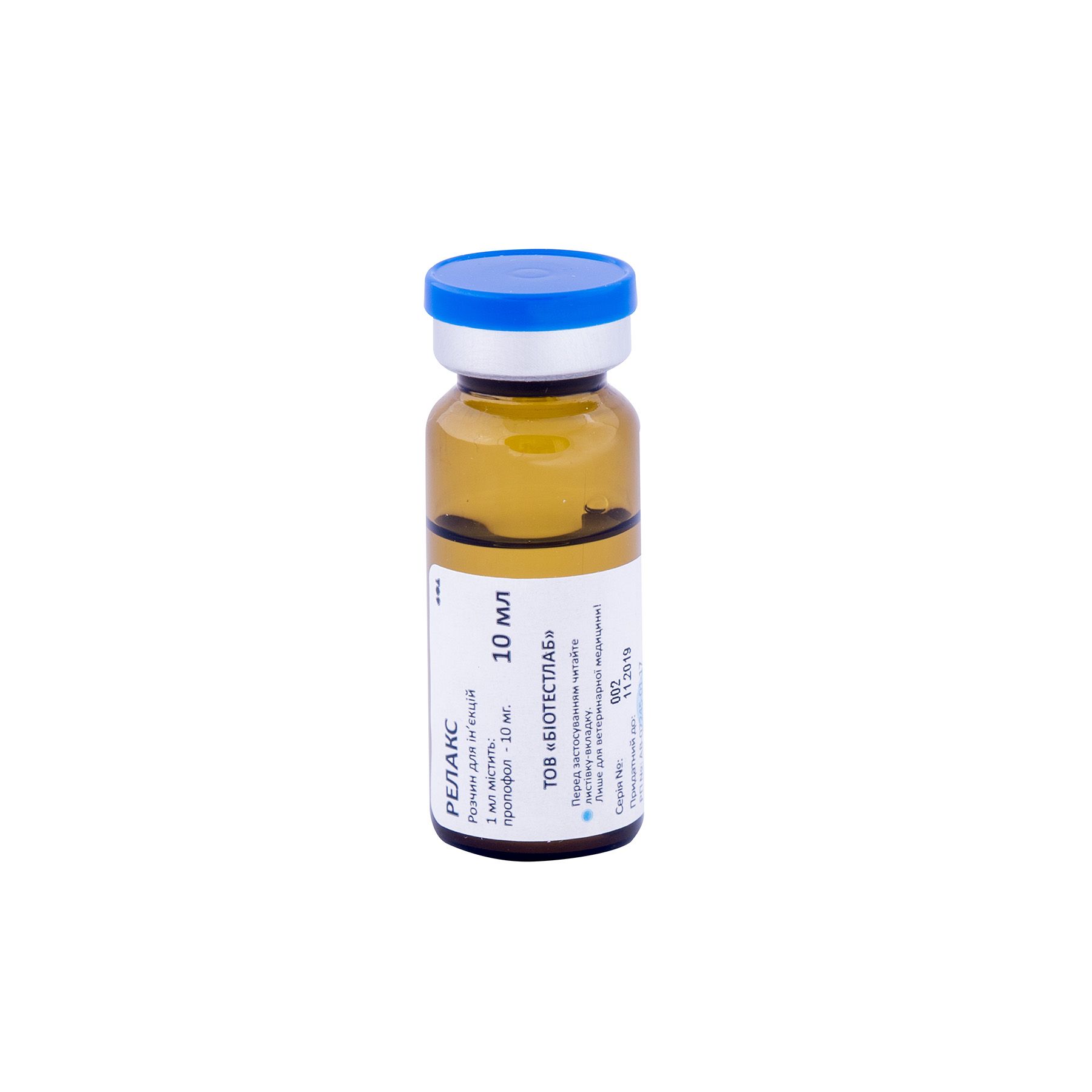Релакс належить до групи препаратів для неінгаляційного наркозу, седативний засіб ультракороткої дії. Пропофол – діюча речовина препарату Релакс характеризується високою ліпофільністю та легко проникає через гематоенцефалічний бар’єр, викликає швидкий короткочасний анестезуючий ефект з мінімальними проявами стадії збудження. Протягом 30-60 секунд настає медикаментозний сон, розвиток якого обумовлений неспецифічним впливом пропофолу на іонні канальці мембран нейронів центральної нервової системи. Анестезуюча дія після одноразового введення препарату в рекомендованій дозі становить до 8 хв. При підтримці анестезії в звичайному режимі значної кумуляції препарату не спостерігається. Після внутрішньовенного введення пропофол зв’язується з білками плазми (98%), метаболізується, головним чином, у печінці шляхом кон’югації з утворенням неактивних метаболітів, які виводяться з організму тварин, в основному, з сечею (близько 88%).