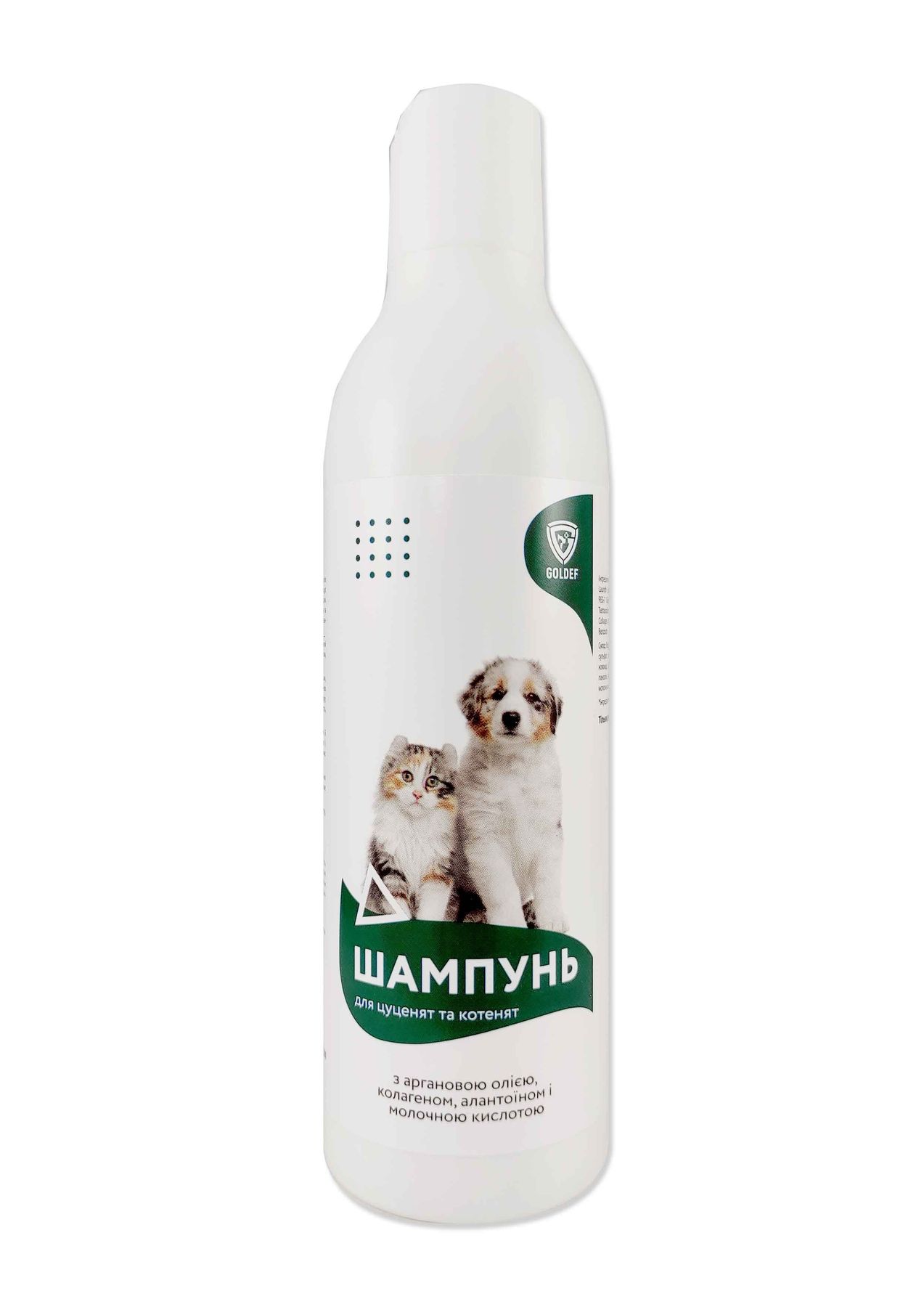 Шампунь GolDef для цуценят та кошенят з аргановою олією, колагеном, алантоїном і молочною кислотою, 250 мл