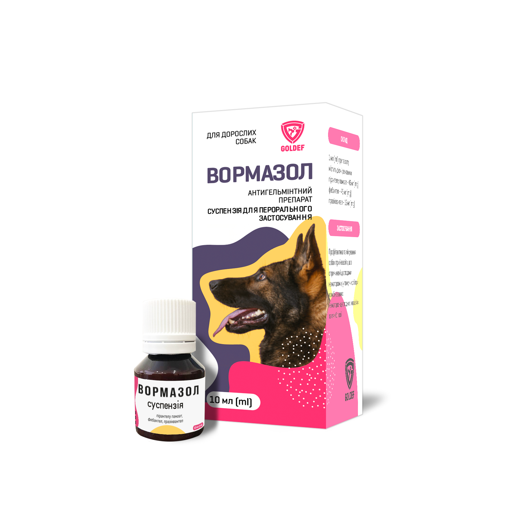 ВОРМАЗОЛ суспензія – комбінований препарат, ефективний проти круглих та стьожкових гельмінтів, а також лямблій. Широкий спектр дії обумовлений комбінацією діючих речовин: пірантелу памоат, фебантел, празіквантел.